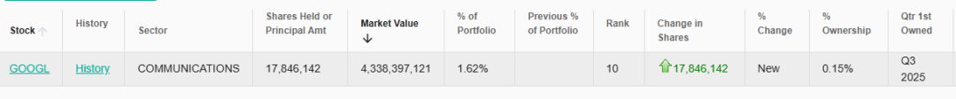 周五,好意思国闻明投资东说念主沃伦·巴菲特旗下伯克希尔公司清晰的13F敷陈解析,公司于本年三季度末新建仓谷歌母公司Alphabet,抓股数约1785万股,抓仓限制高达43亿好意思元,使其踏进伯克希尔第十大重仓股。