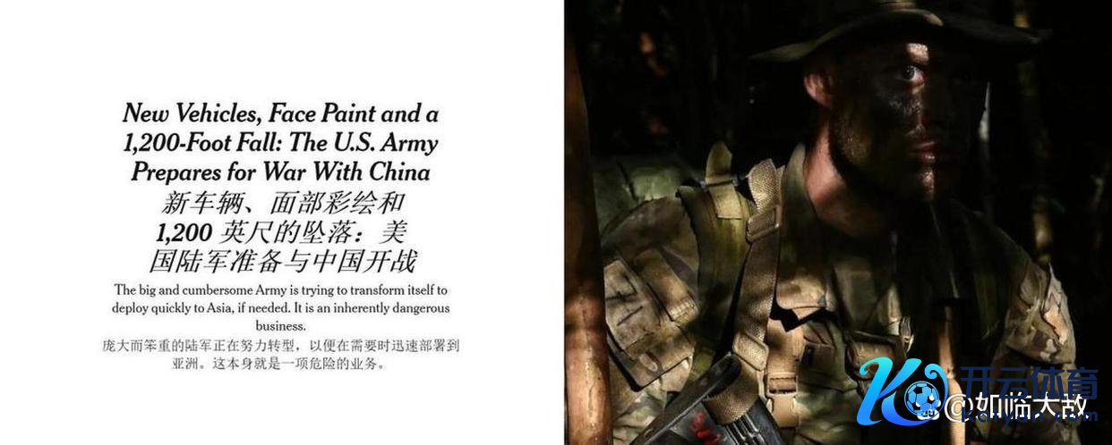 《纽约时报》29日报谈,好意思军10月初在夏威夷举行了一场演习,为潜在的对华斗争作念准备。报谈题为《新装备、面部迷彩和1200英尺陨落:好意思国陆军准备与中国开战》,谨防先容了这场太平洋陆军演习。