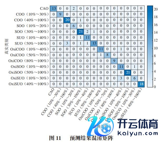 由表2可知,CAO的调回率为86.67%,精准率为100%,F1分数为0.93,各掺兑类型及掺兑比例样本的平均调回率为90.87%、平均精准率为90.83%、平均F1分数为0.90。但不同掺兑类型及比例的检出精度有一定互异。举例,当COO掺兑比例为10%~30%、OxiCOO掺兑比例为80%~100%、OxiSOO掺兑比例为50%~100%、OxiSUO掺兑比例为40%~100%时,SVM模子的检出精度最高,调回率和精准率均达到100%,F1分数均为1.00。而当OxiSUO掺兑比例在10%~30%时,调回率和F1分数最低,分别为66.67%和0.75,当OxiSOO掺兑比例在10%~40%时,精准率最低,为73.33%。总体而言,模子具有较高的检测精度。