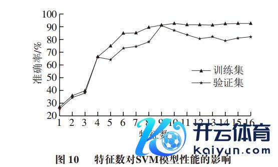 为了细目SVM模子的最优特征数,依照特征权重从大到小的限定,缓缓增多特征个数并锻真金不怕火SVM多分类模子,分别计较模子锻真金不怕火集和考证集的分类准确率,效果如图10所示。跟着特征数的增多,SVM模子在锻真金不怕火集和考证蚁集的分类准确率有一定互异。在锻真金不怕火蚁集,跟着特征数的增多,分类准确率逐步普及,当特征数为10时,锻真金不怕火集分类准确率最高(92.56%)。持续增多特征数时,分类准确率的变化不显豁。在考证蚁集,跟着特征数的增多,分类准确率亦呈飞腾趋势,并在特征数为9时达到最大(90.77%)。但持续增多特征数时,分类准确率呈下落趋势,并在特征数为16时降至82.05%。说明特征数从1逐步增多到9时,涵盖的样本有用信息更为丰富,有助于不同油样的永别,模子的分类准确率增多。但过多的特征数则会引入冗余特征,增多模子复杂度,导致模子的过拟合。综上,特征数为9时,考证集分类准确率最高,模子实在不存在过拟合。因此,最终保留前9 个LF-NMR弛豫特征进行SVM模子的构建。