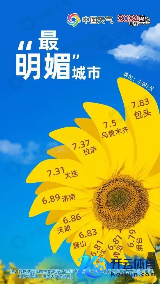 2024年最“明媚”城市之争,山东三市上榜,分袂是济南(日均日照时长6.89小时)、青岛(日均日照时长6.87小时)和烟台(日均日照时长6.79小时),内蒙古包头以日均7.83小时日照时长夺魁。数据基于我国主要城市2024年1月1日至12月10日日均日照时数名次,榜单前十名多为朔方城市,主要因为朔方水汽和太空云量较少,更得太阳怜爱。