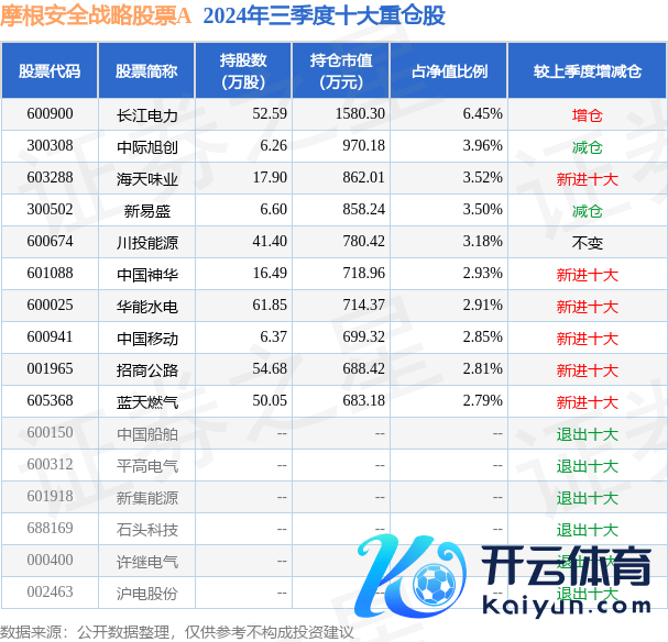 摩根安全策略股票A为股票型基金,证实最新一期基金季报涌现,该基金财富竖立:股票占净值比85.02%,无债券类财富,现款占净值比15.29%。基金十大重仓股如下:
