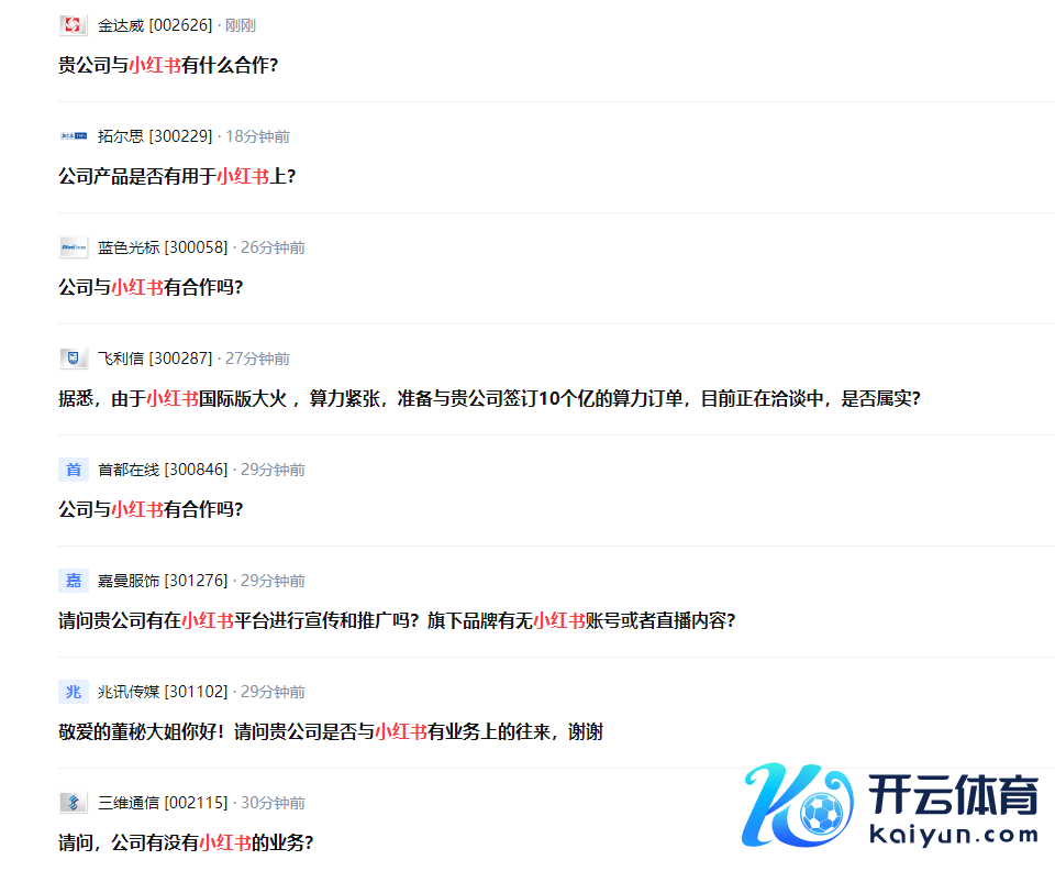 而当天在A股市集,小红书成见股也走红,掀翻了一阵涨停潮。在互动易等平台上,记者看到九游体育app官网多半考虑公司是否与小红书有所互助的问题领会。