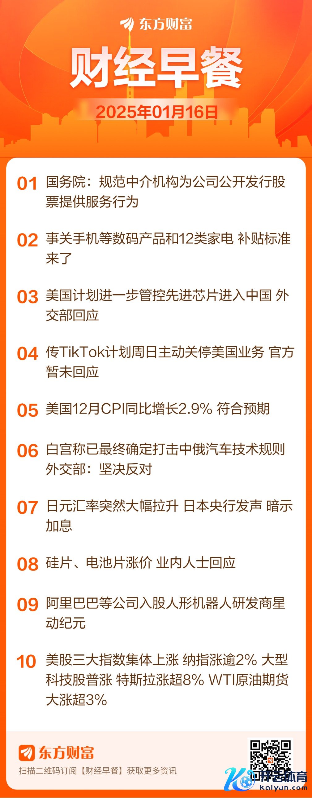 2、新华网:商务部等部门发布两份文献,对实施手机、平板、智高腕表(手环)购新补贴,以及作念好2025年家电以旧换新职责给予安排,明确具体补贴品类和措施。其中,买手机等数码产物每件最高补500元,买12类家电产物每件最高补2000元。