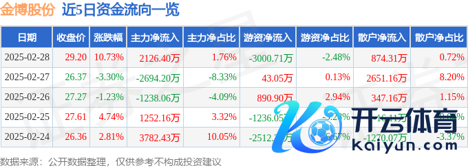本站音书,截止2025年2月28日收盘,金博股份(688598)报收于29.2元,高涨10.73%,换手率19.29%,成交量39.39万手,成交额12.08亿元。