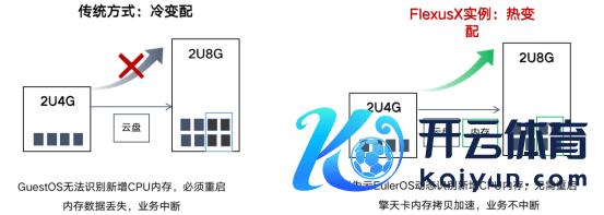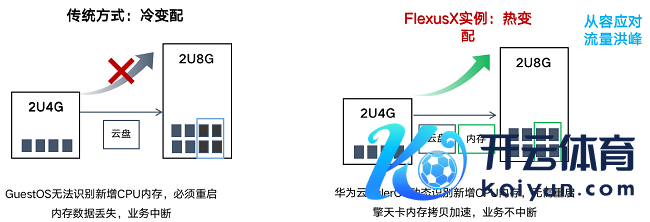通过上图不错看出,传统神志是冷变配,GuestOS无法识别新增CPU内存,必须重启内存数据丢失,业务中断;而FlexusX实例则是热变配,镇静应答流量洪峰,华为云EulerOS动态识别新增CPU内存,无需重启擎天卡内存拷贝加快,业务不中断。同期,FlexusX实例率先在公有云上完了算力热升级,业界主流云厂商惟一支抓。