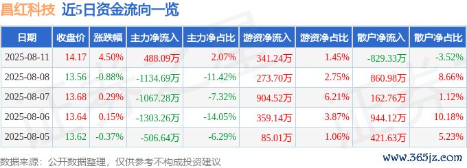 本站音信,胁制2025年8月11日收盘,昌红科技(300151)报收于14.17元九游体育娱乐网,高潮4.5%,换手率4.54%,成交量16.73万手,成交额2.36亿元。